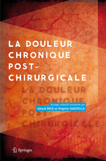 Ce livre collectif fait ainsi le point pour la première fois sur les facteurs de risque, l'évaluation, les données cliniques, les stratégies de prévention des douleurs post-chirurgicales sans oublier les douleurs neuropathiques ou chroniques comme celles ressenties après certaines mastectomies.