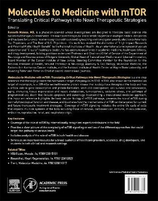 Molecules to Medicine with mTOR: Translating Critical Pathways into Novel Therapeutic Strategies is a one-stop reference that thoroughly covers the mechanistic target of rapamycin (mTOR). mTOR, also known as the mammalian target of rapamycin, is a 289-kDa serine/threonine protein kinase that is ubiquitous throughout the body and has a critical role in gene transcription and protein formation, stem cell development, cell survival and senescence, aging, immunity, tissue regeneration and repair, metabolism, tumorigenesis, oxidative stress, and pathways of programmed cell death that include apoptosis and autophagy. Incorporating a translational medicine approach, this important reference highlights the basic cellular biology of mTOR pathways, presents the role of mTOR during normal physiologic function and disease, and illustrates how the mechanisms of mTOR can be targeted for current and future therapeutic treatment strategies. Coverage of mTOR signaling includes the entire life cycle of cells that impacts multiple systems of the body including those of nervous, cardiovascular, immune, musculoskeletal, endocrine, reproductive, renal, and respiratory origin.